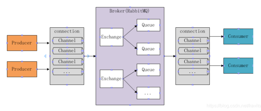 Exchange: 交换机,通过管道接受生产者信息,再通过一定规则将信息转发给某个队列(过滤消息)